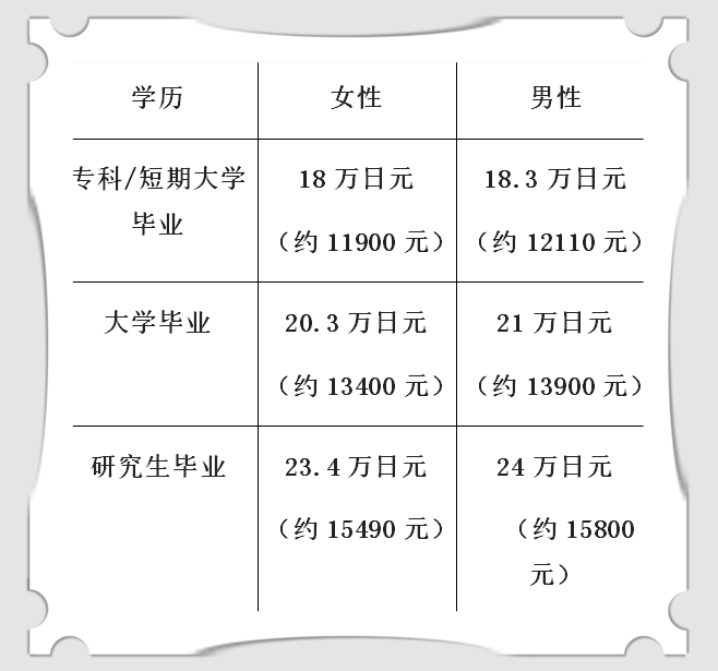 Tips:在日本,剛畢業(yè)的職場新人第一個月大概能拿到多少薪水呢?(根據(jù)匯率變動,折合人民幣的金額有所不同