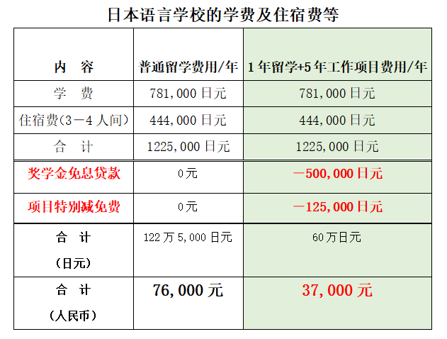 4.出境前只需向?qū)W校交納60萬日元(含1年學(xué)費(fèi)及1年住宿費(fèi))即可,相當(dāng)于減免50%的費(fèi)用,是普通留學(xué)費(fèi)用的一半;
