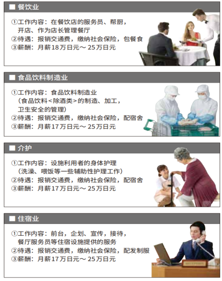 5.從事工作:酒店住宿業(yè)、食品飲料加工業(yè)、餐飲業(yè)、介護(hù)業(yè)等14種行業(yè)。