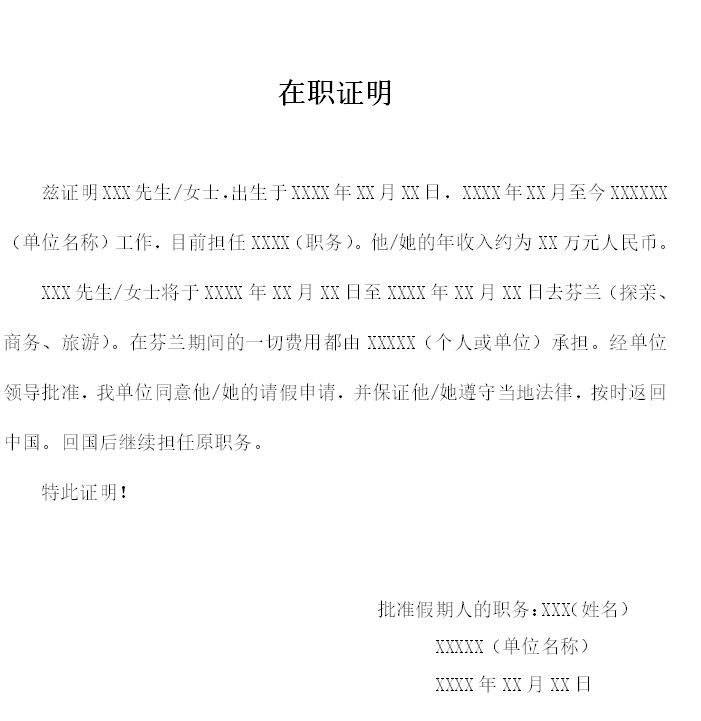 附件:中文在職證明模板