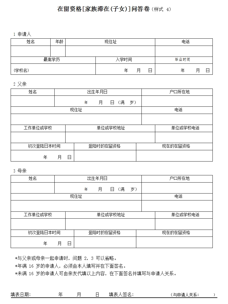 日本——定住者(子女)問答卷