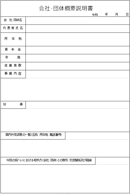 日本——會(huì)社·團(tuán)體概要說(shuō)明書