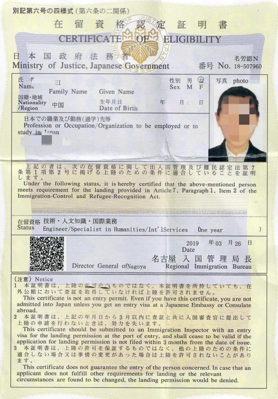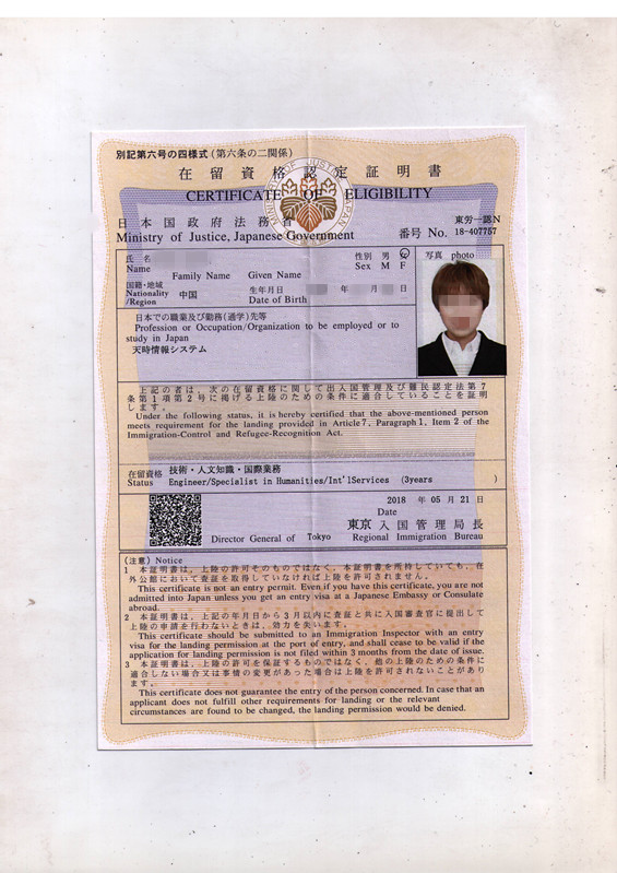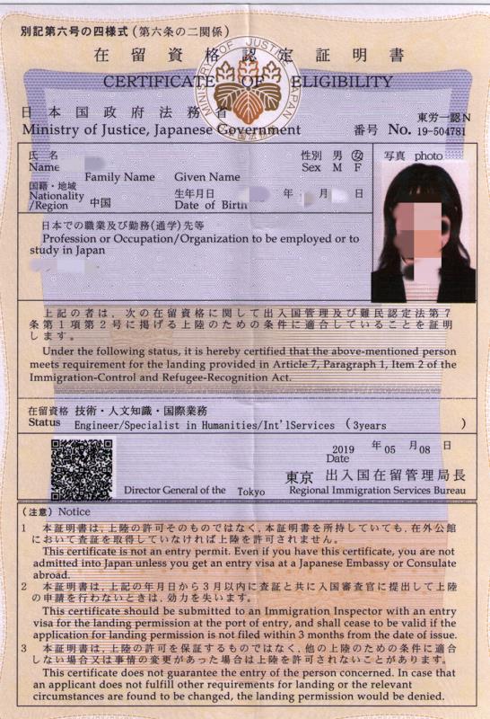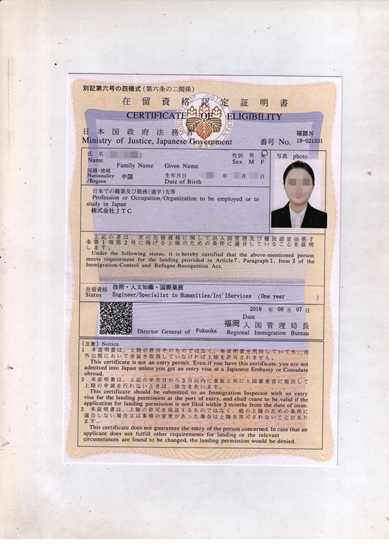 日本在留資格(返簽證)