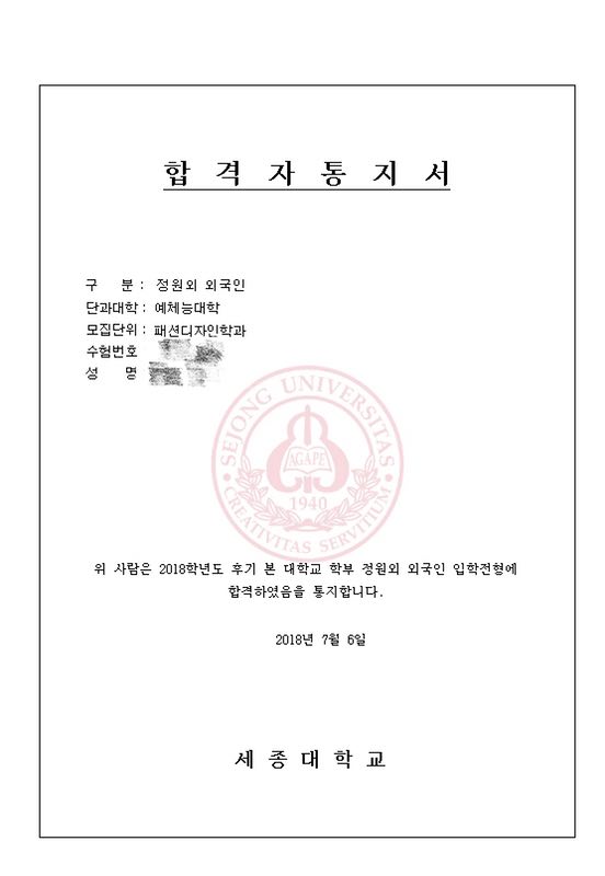 每日新聞獎(jiǎng)學(xué)金學(xué)生錄取通知書