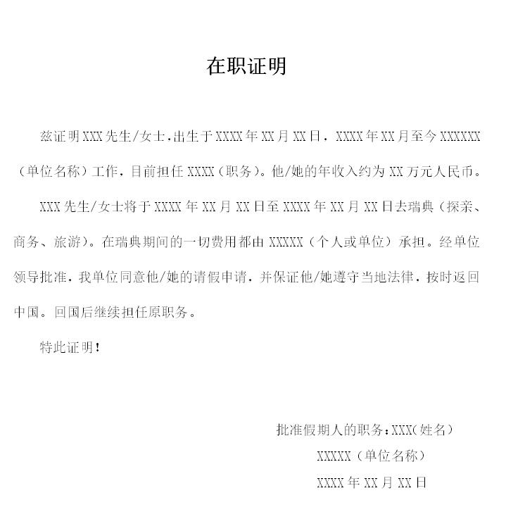 附件:中文在職證明模板