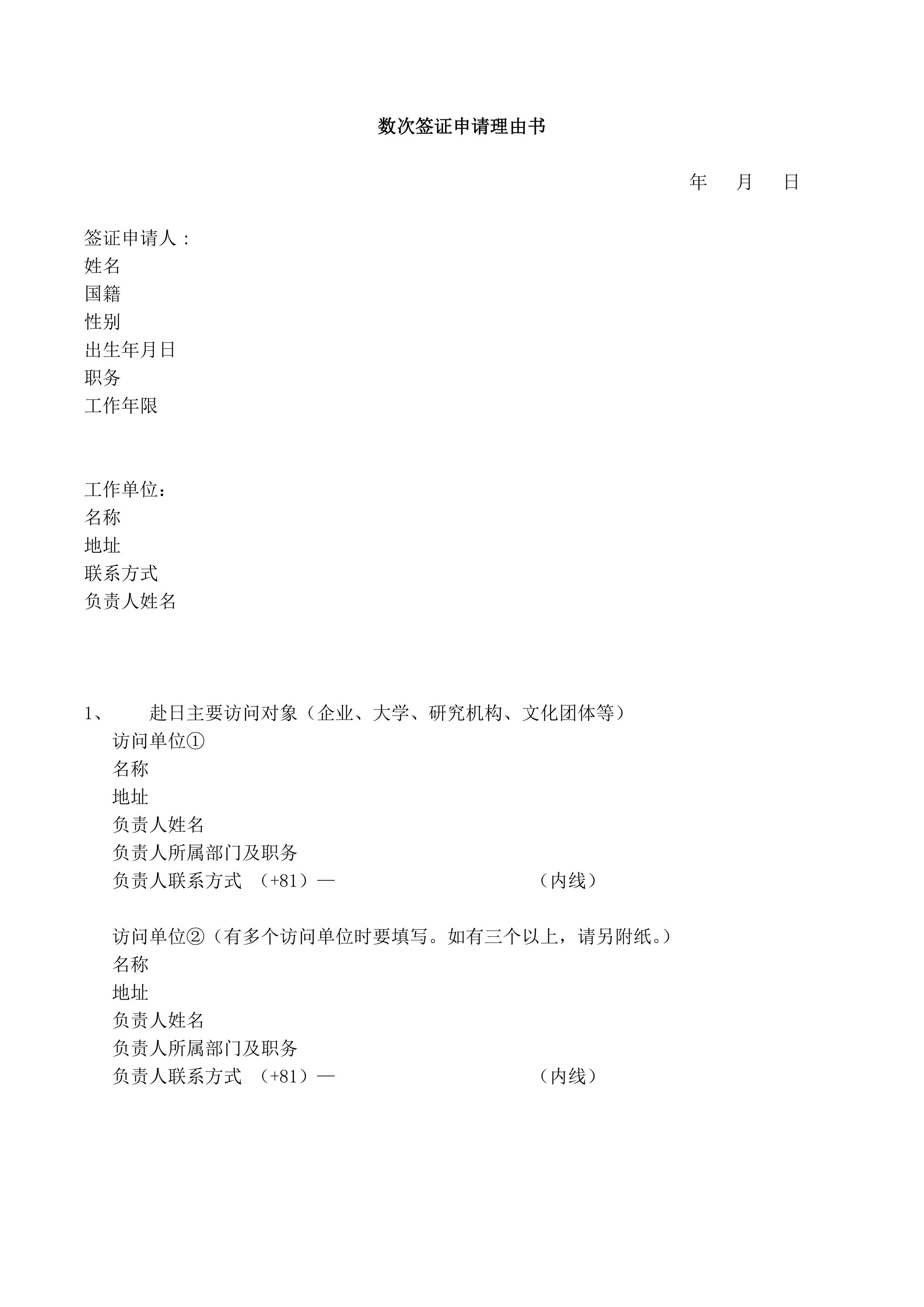 附件1:數(shù)次簽證申請(qǐng)理由書.docx