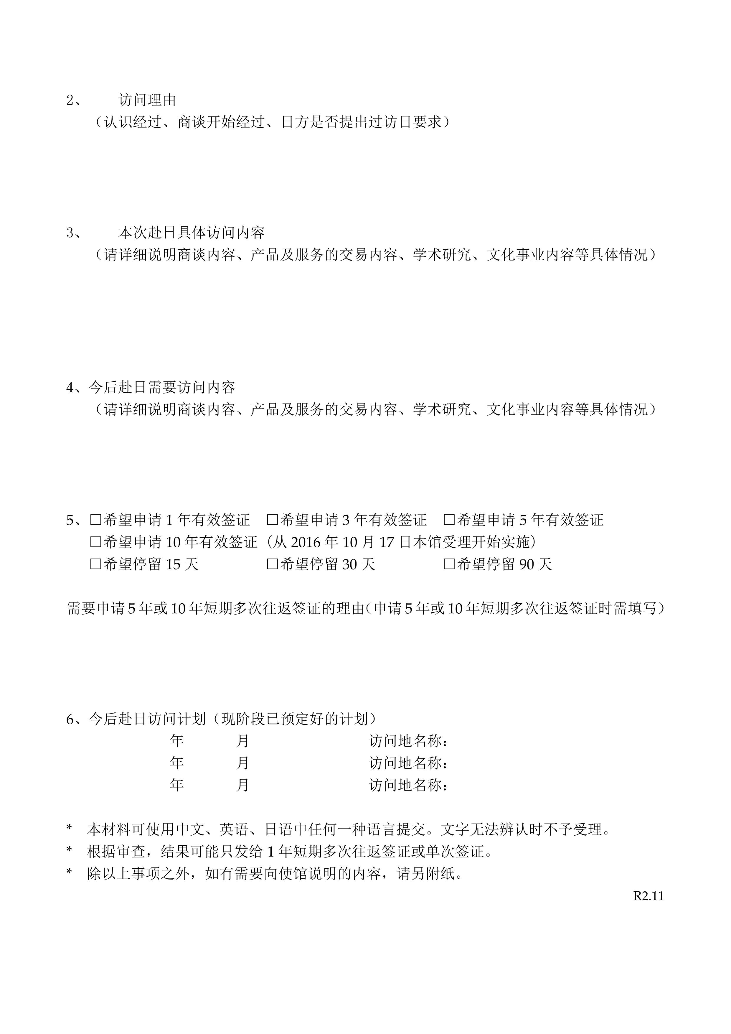 日本商務(wù)多次往返——數(shù)次簽證申請(qǐng)理由書