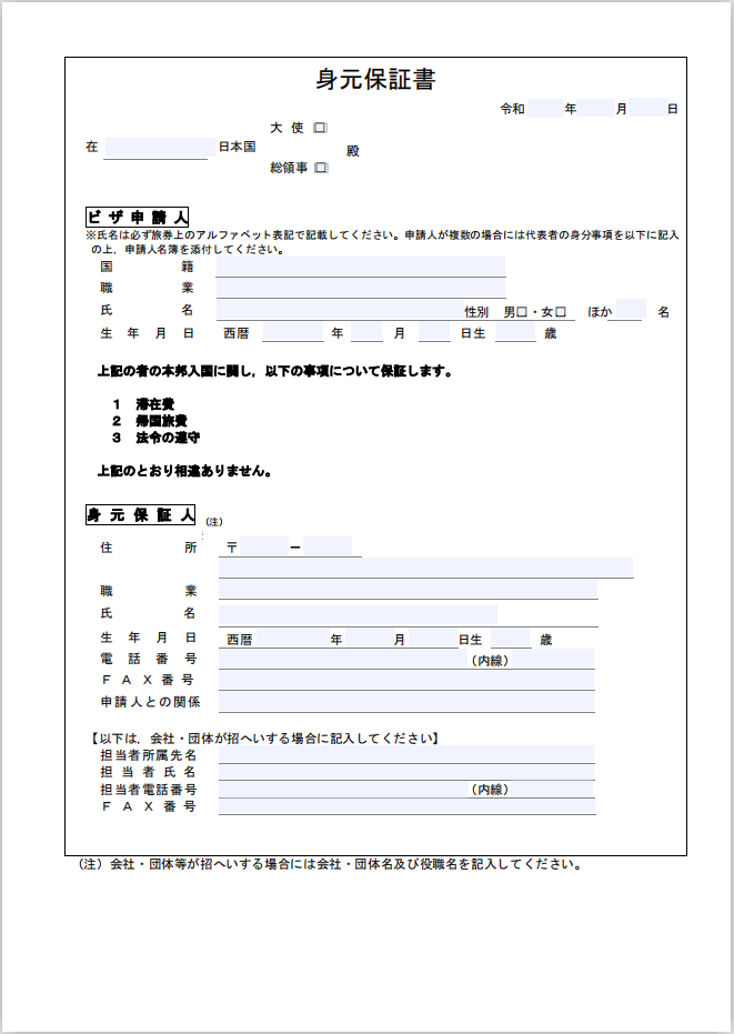 日本探親、訪友、商務——身元保證書