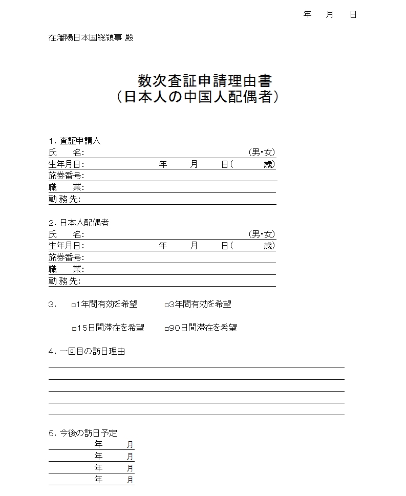 日本——同伴數(shù)次簽證申請(qǐng)書