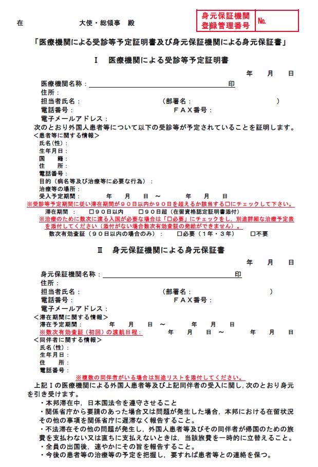 醫(yī)療機(jī)構(gòu)出具的預(yù)約診斷書及身元保證機(jī)構(gòu)出具的身元保證書